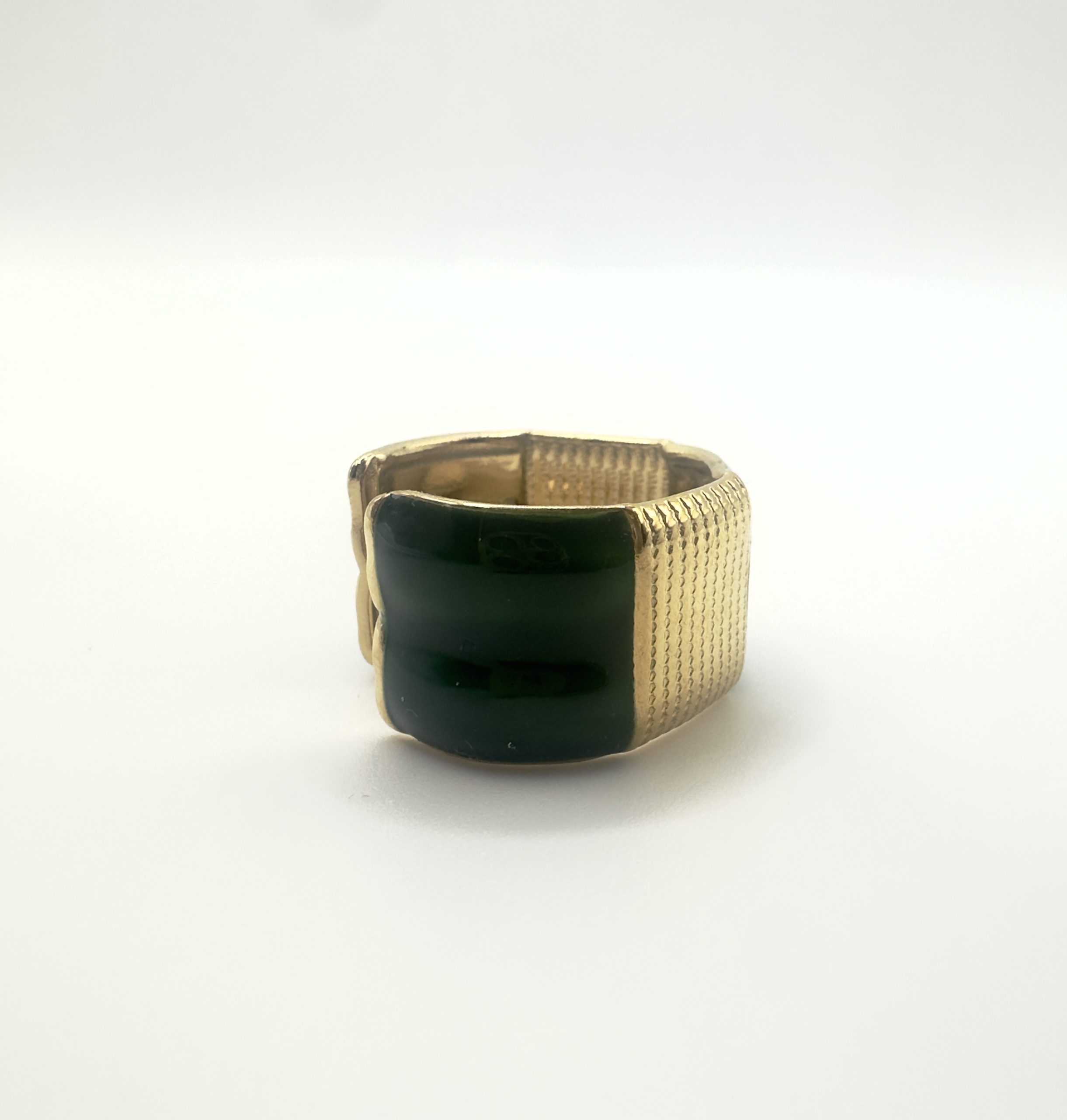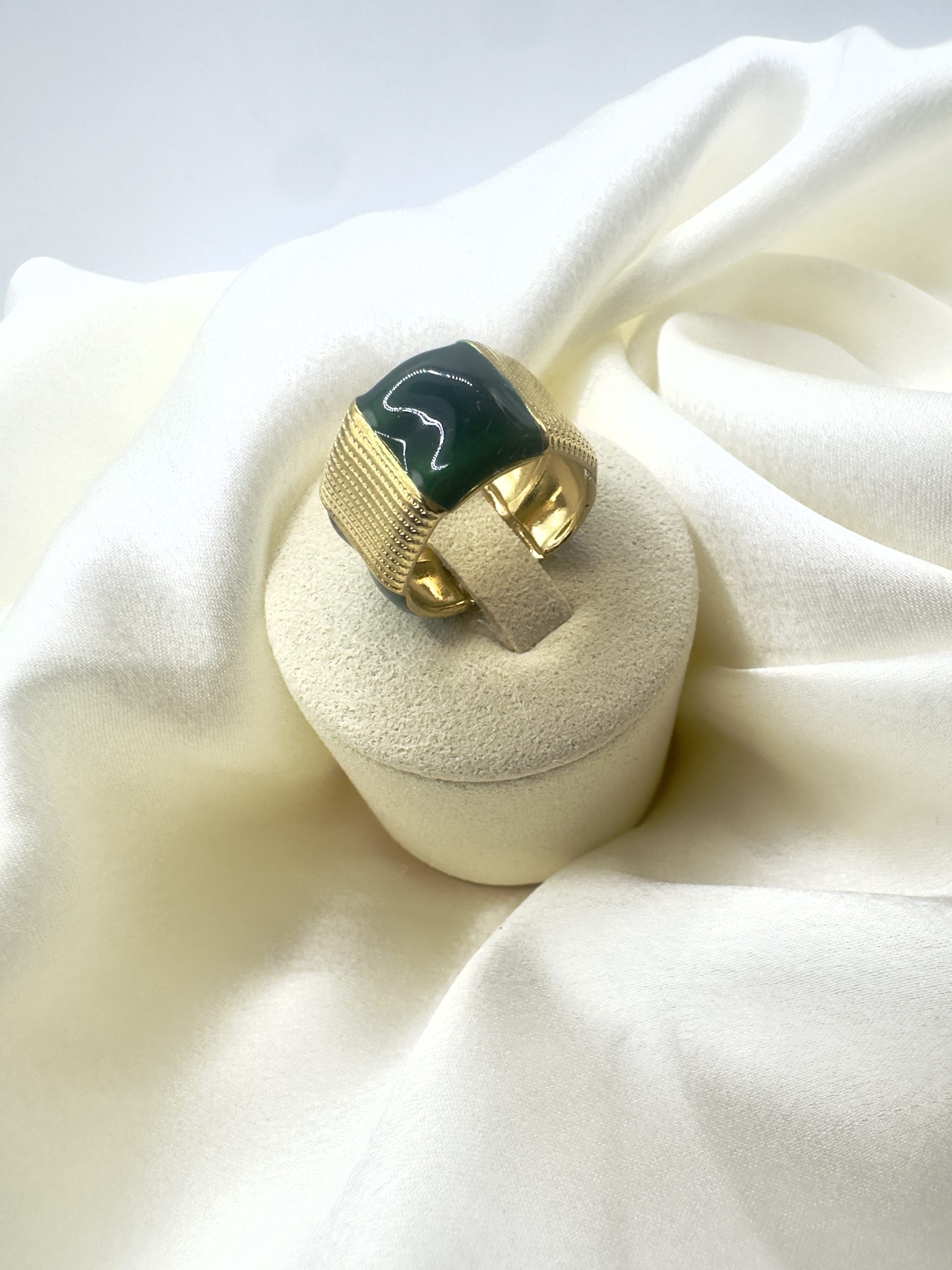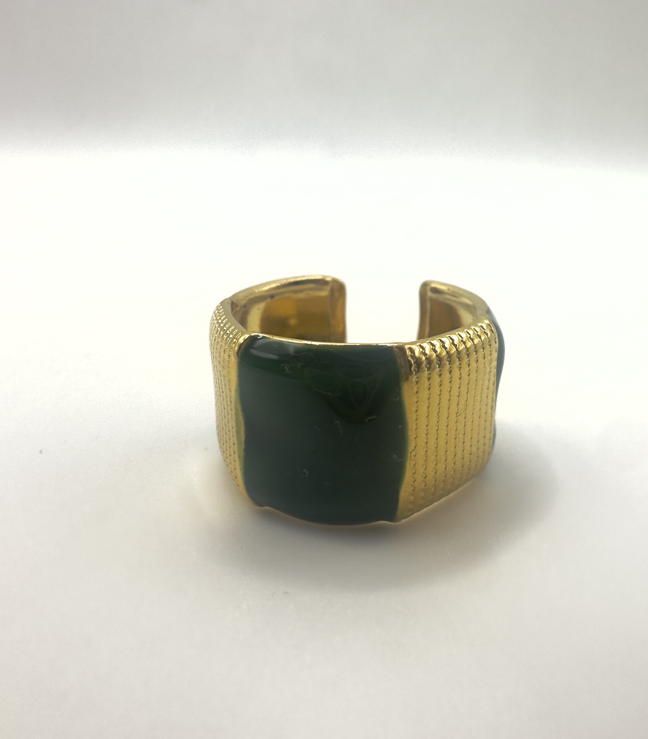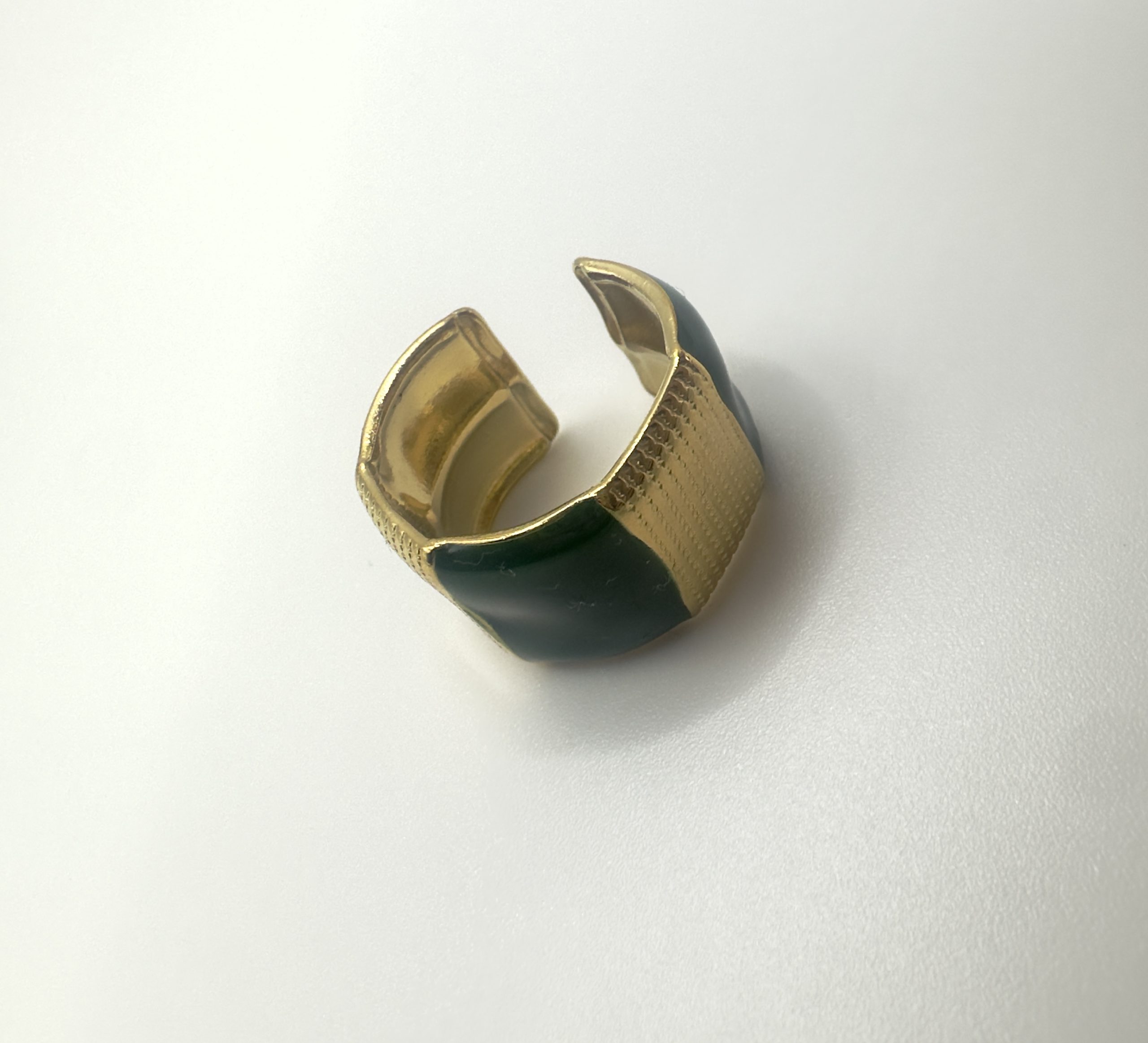 Découvrez notre bague en acier inoxydable ce bijou allie modernité et tradition, avec sa surface lisse recouverte d’une résine colorée éclatante. Séparé par un motif ciselé en émail doré, il apporte une touche d’élégance et de raffinement à votre main.