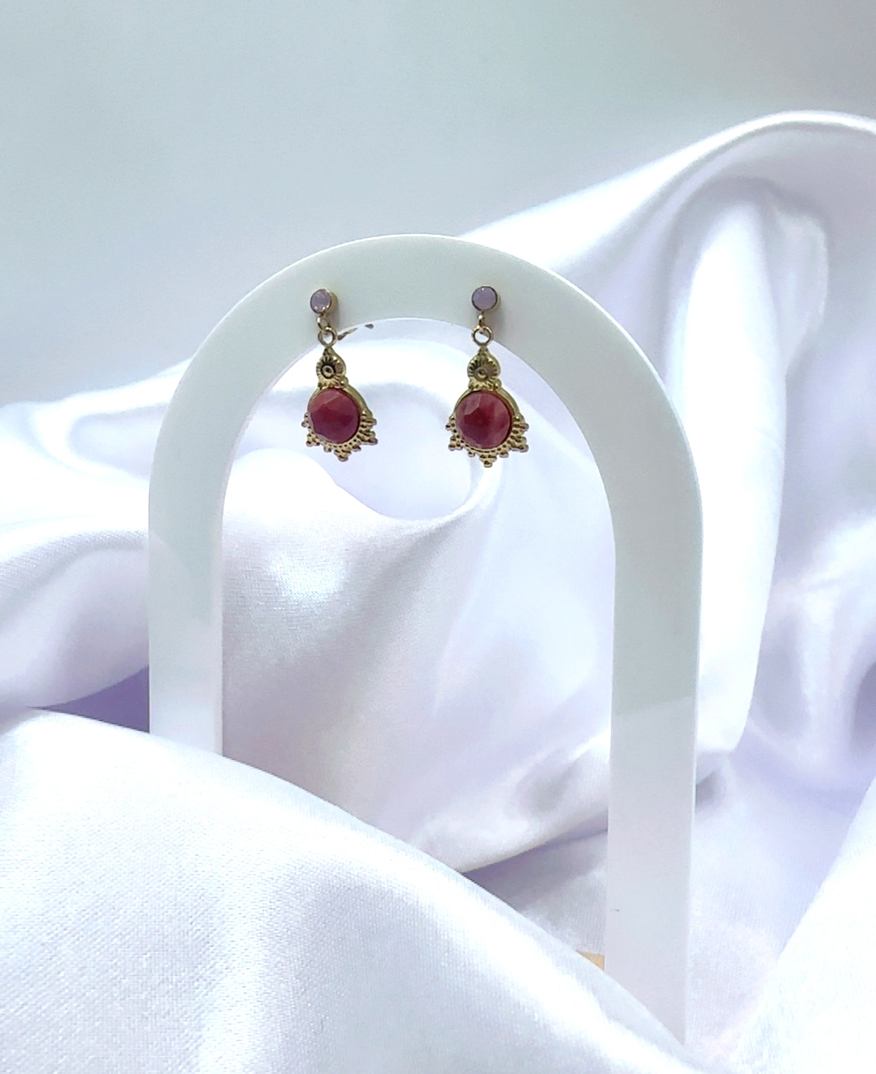 Leur pierre ronde capte la lumière avec délicatesse, offrant un éclat doux et sophistiqué qui s’accorde parfaitement à toutes les carnations.