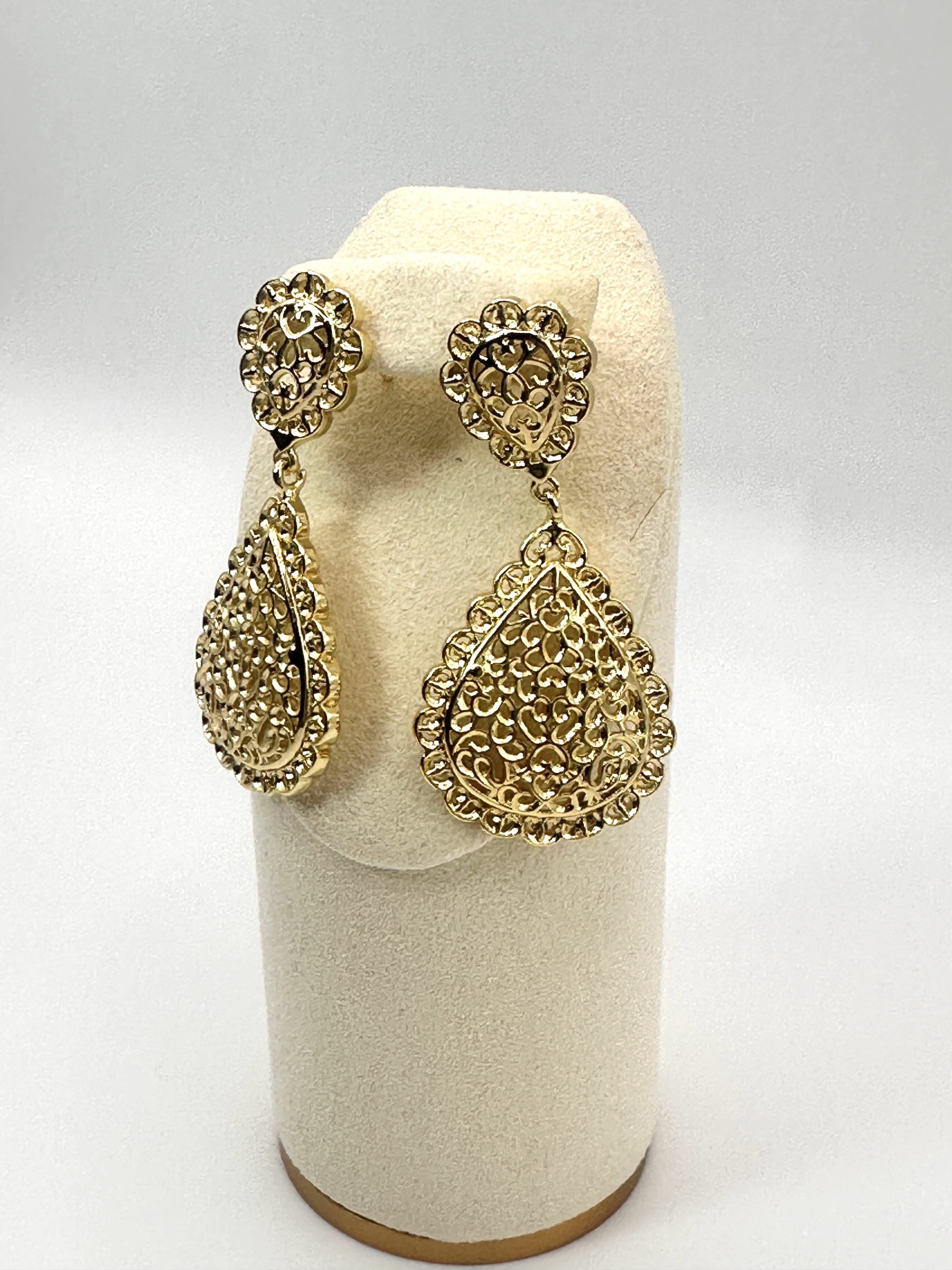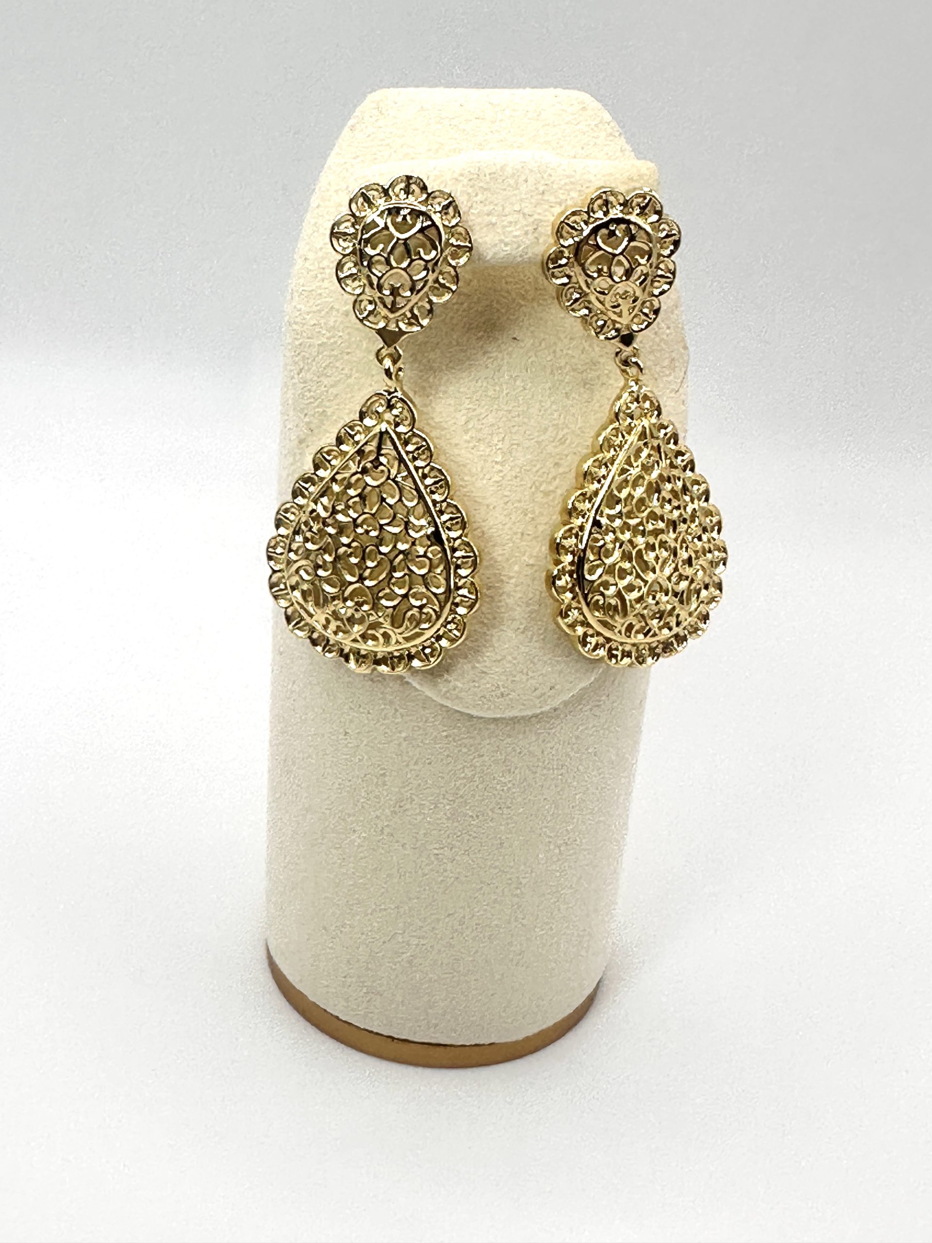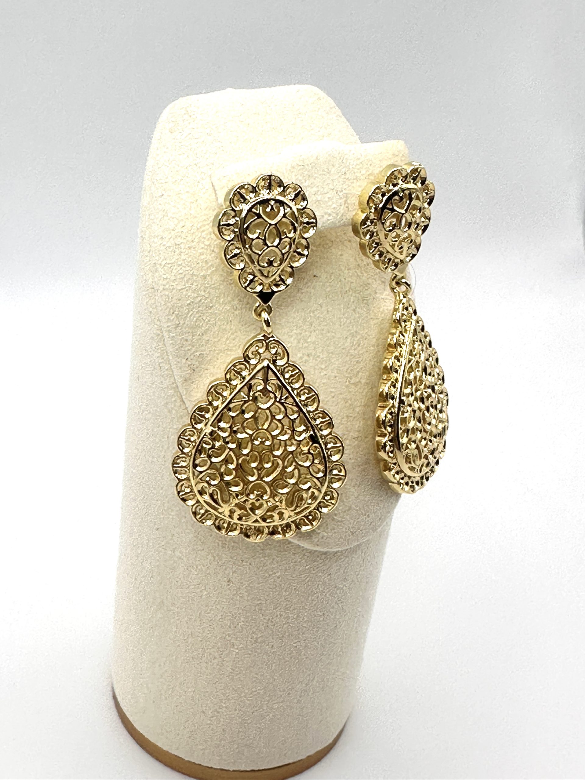 Ces boucles d’oreilles allient tradition et modernité. Inspirées du style tqlidi marocain, elles sont réalisées en acier inoxydable doré de haute qualité, résistant au ternissement et à l’usure.