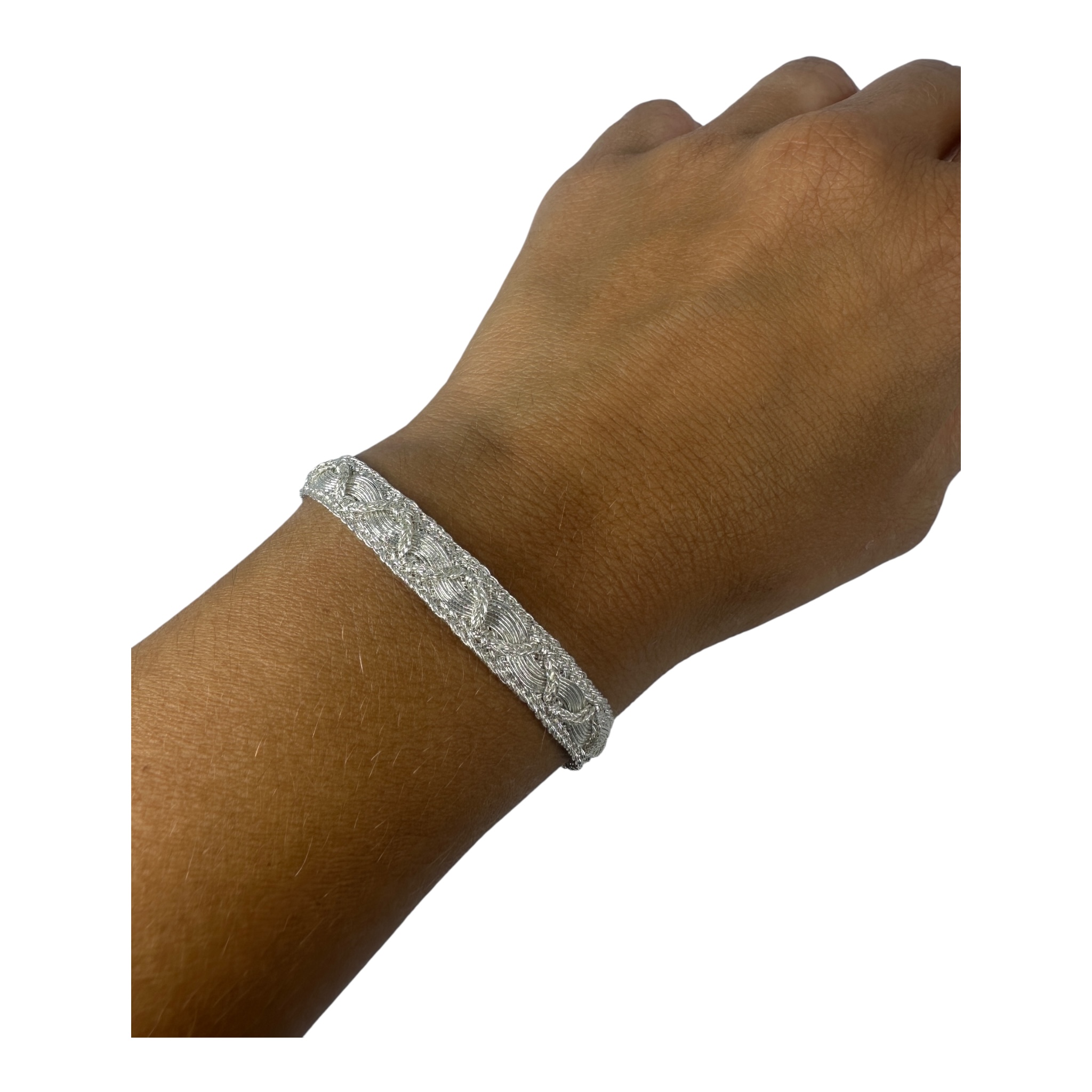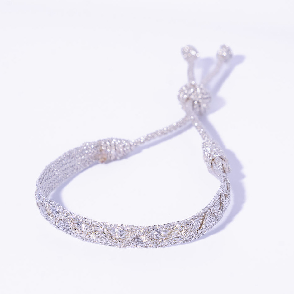 Bracelet artisanal en fil d’or argenté tressé – Ajustable