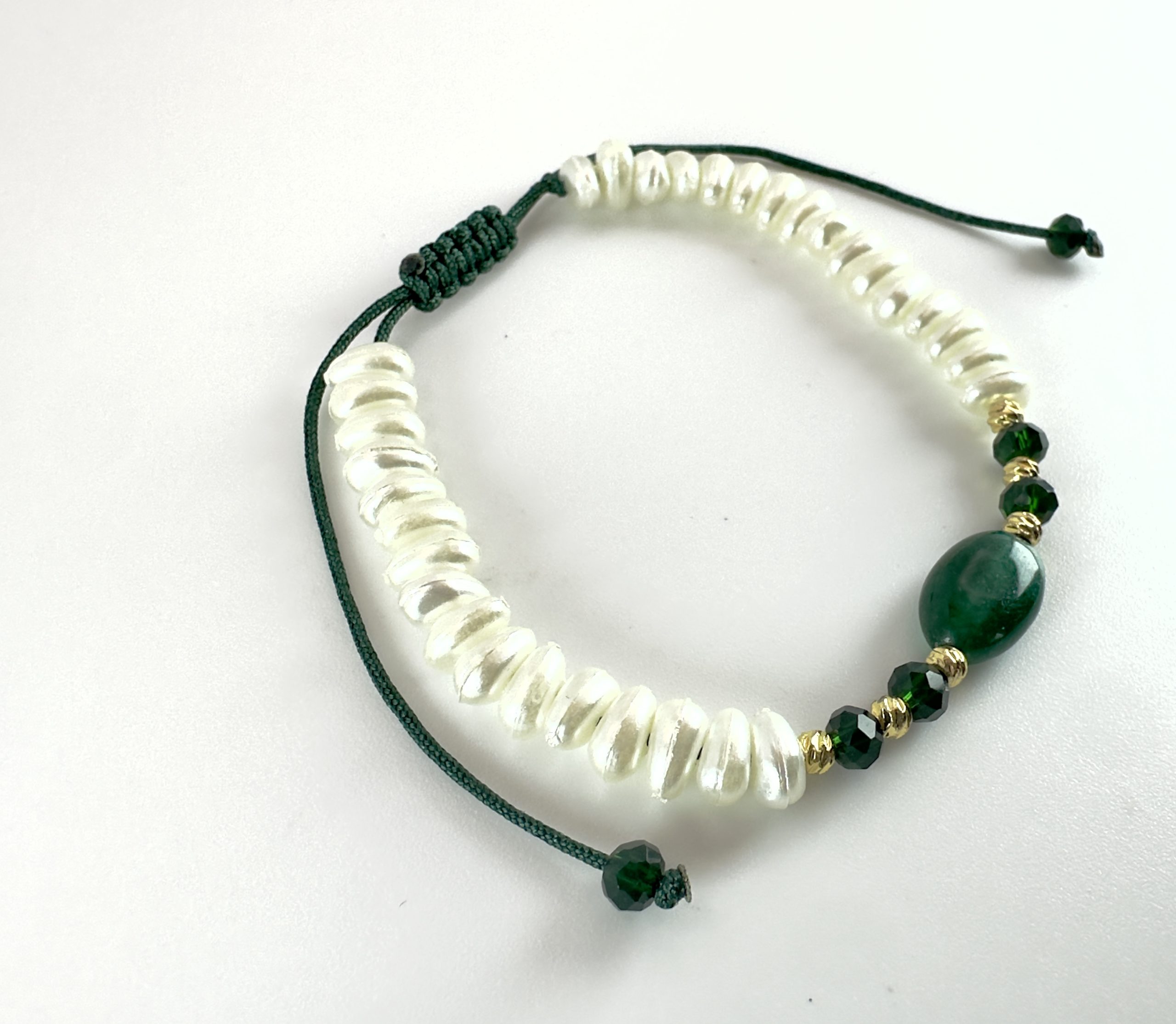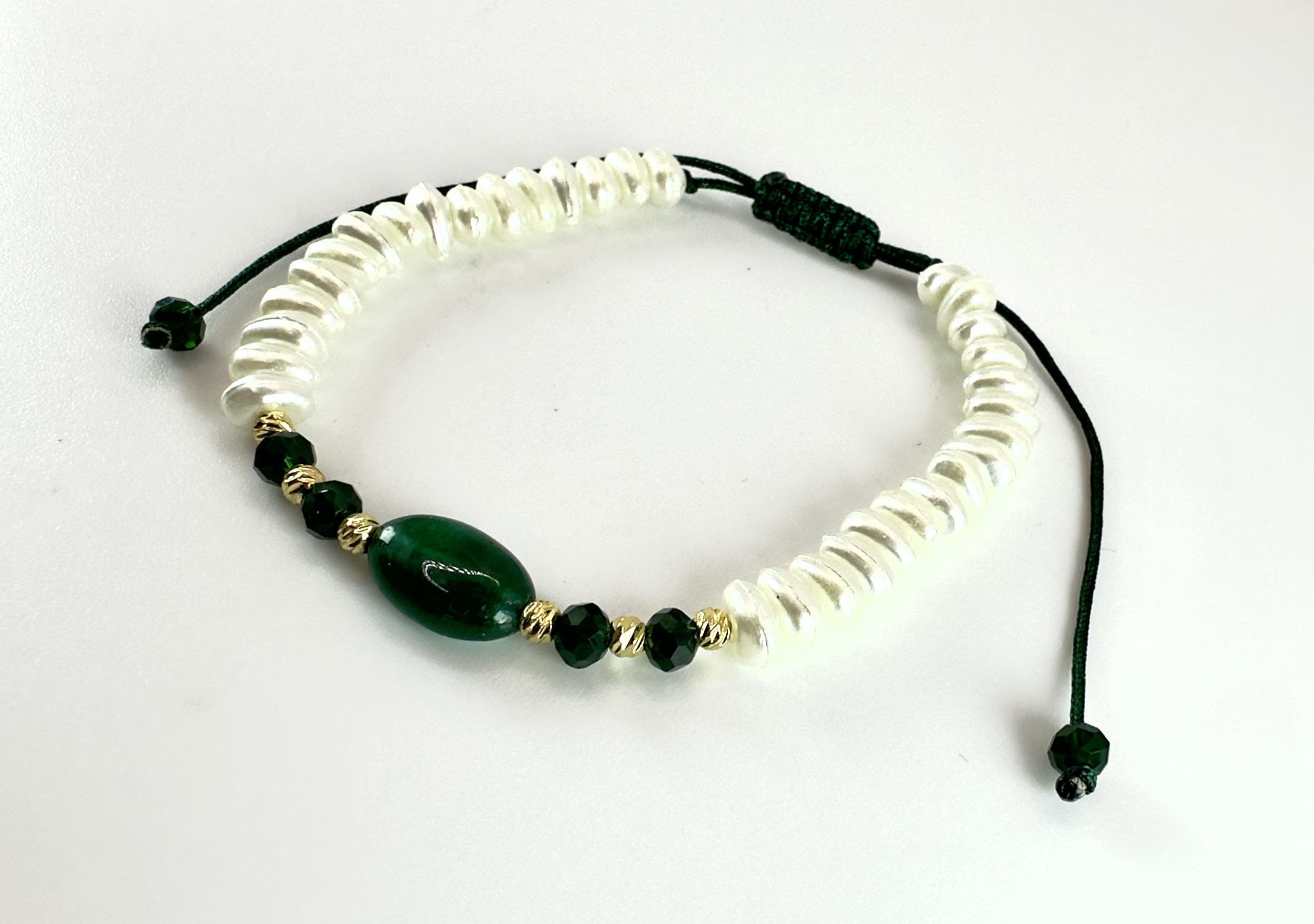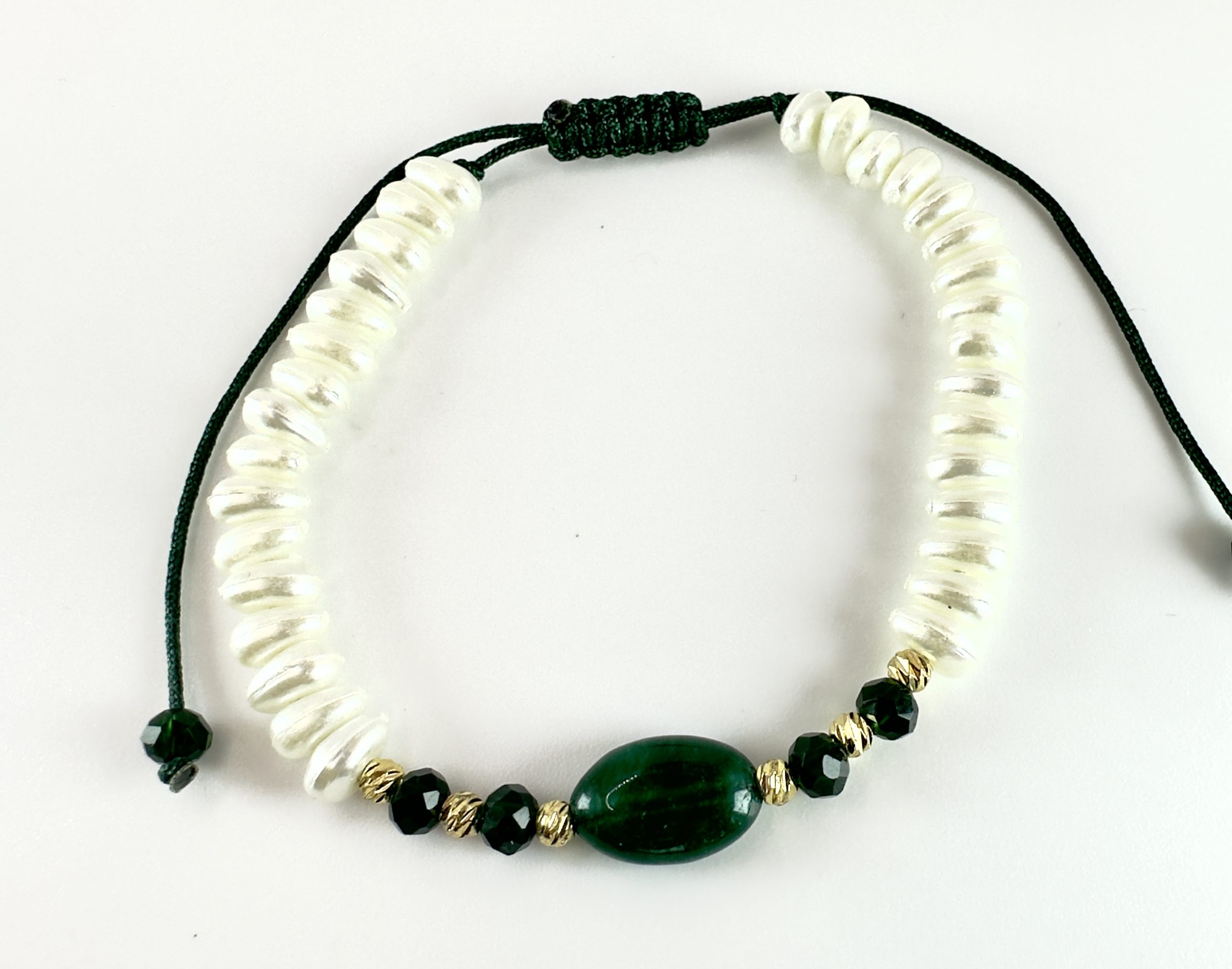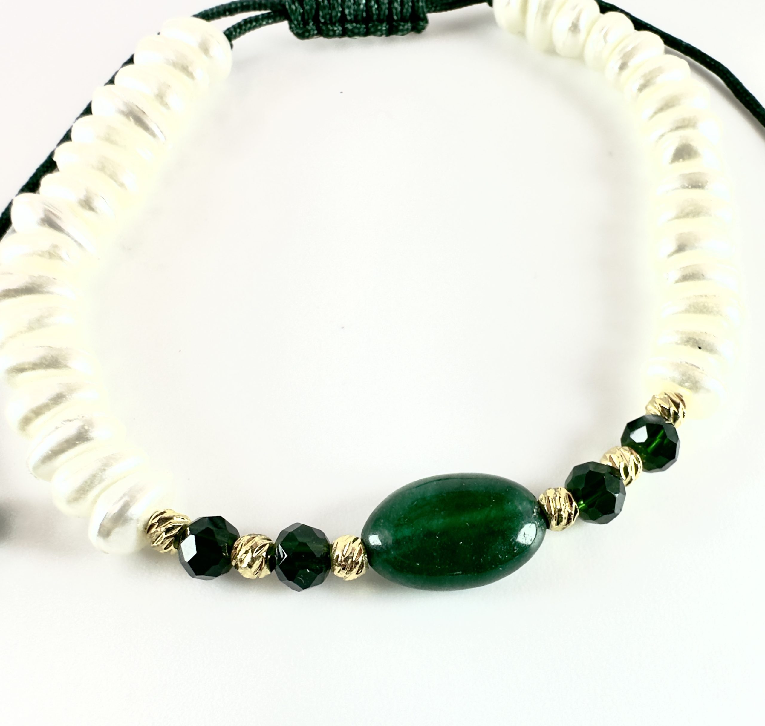 Bracelet sur cordon avec perles façon johr et perle précieuse