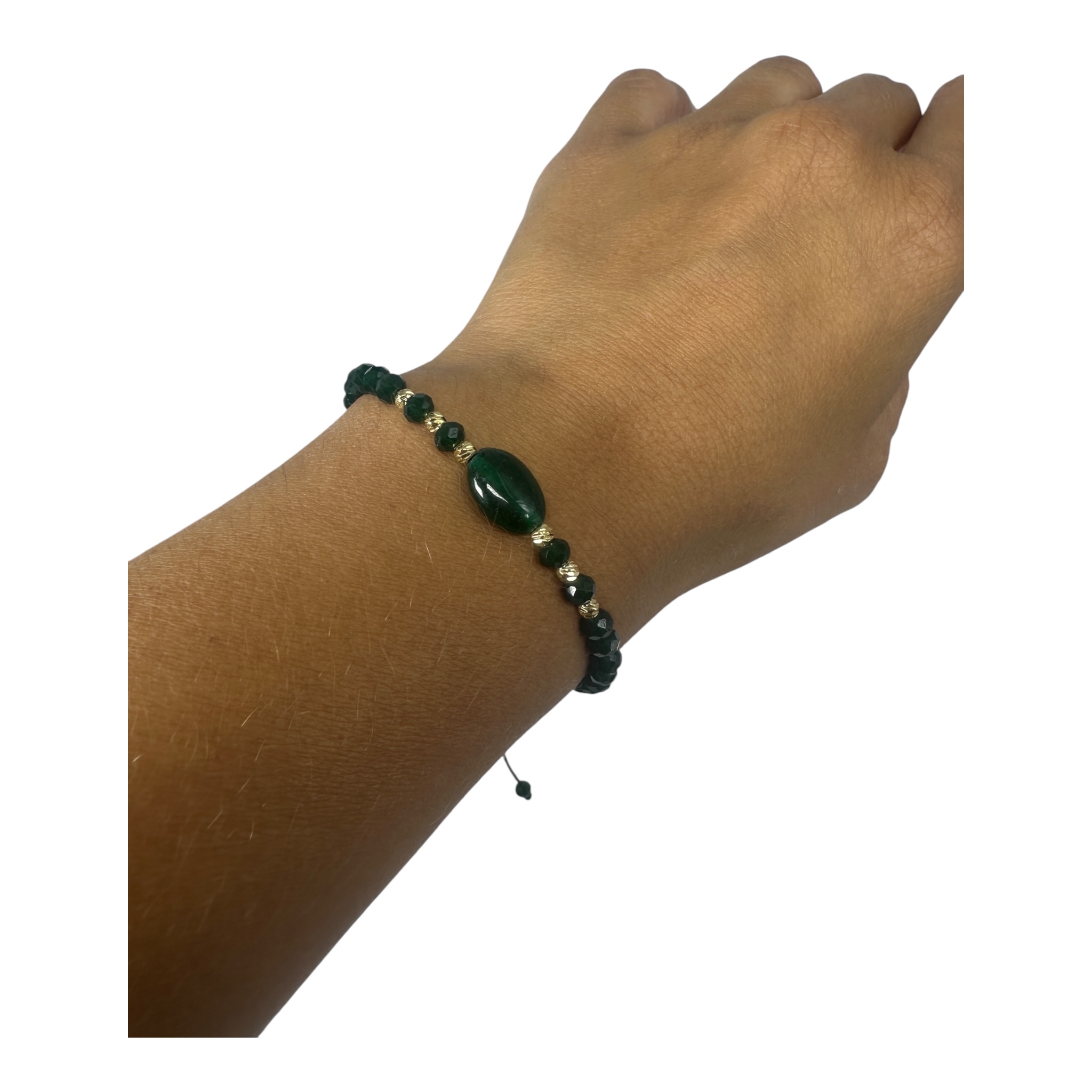 Bracelet avec perles précieuses et bijoux en acier inoxydable.