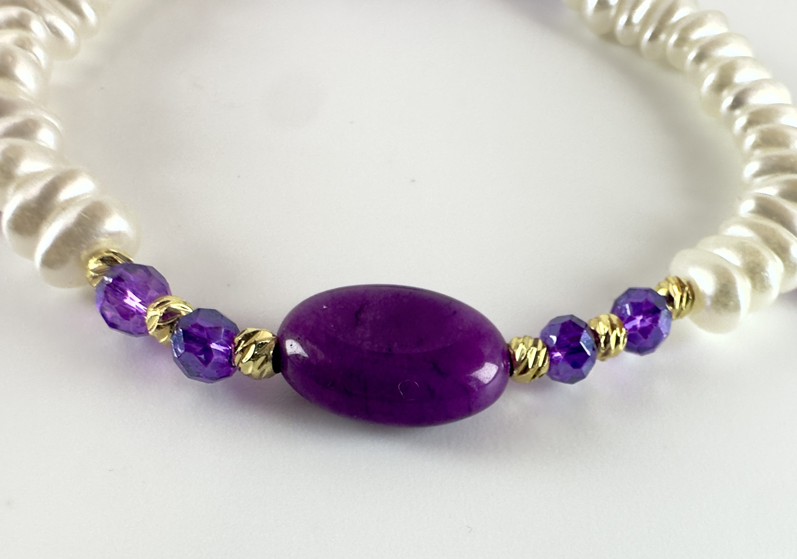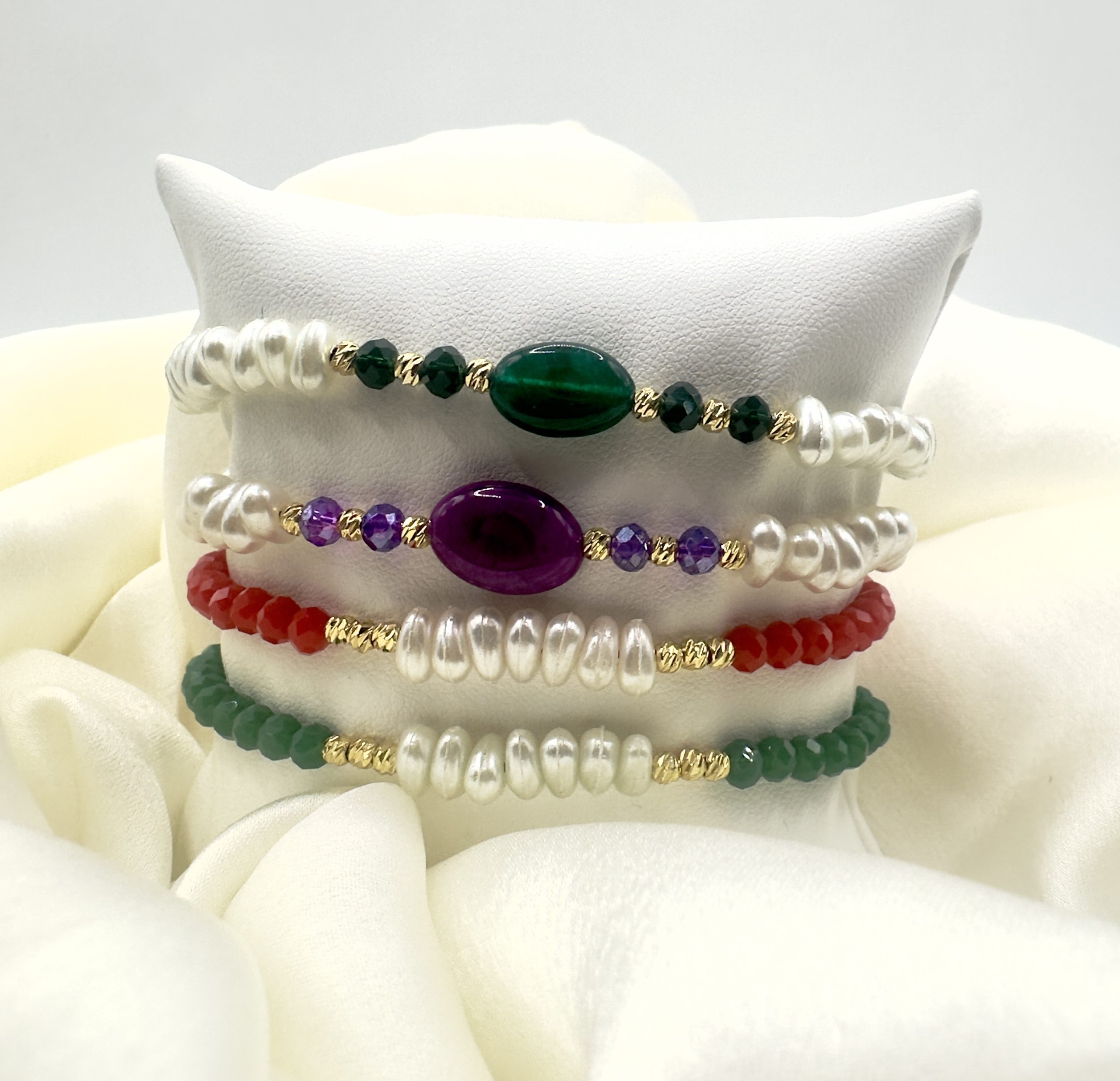 Bracelet avec perles précieuses et bijoux en acier inoxydable.