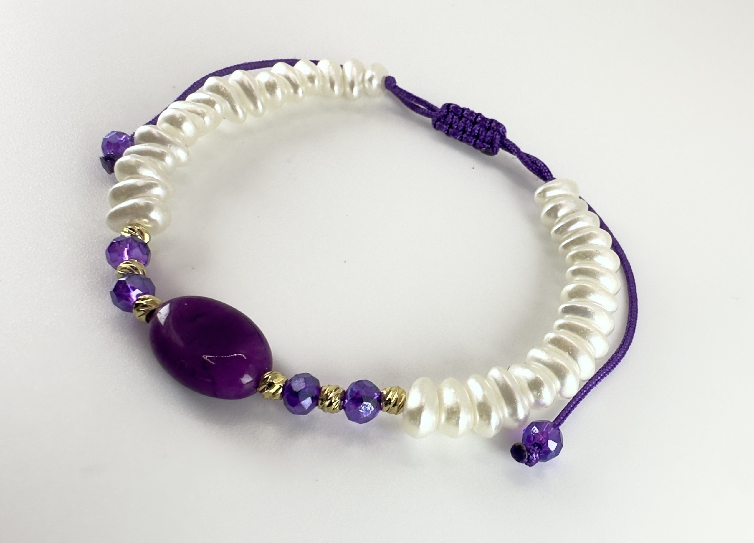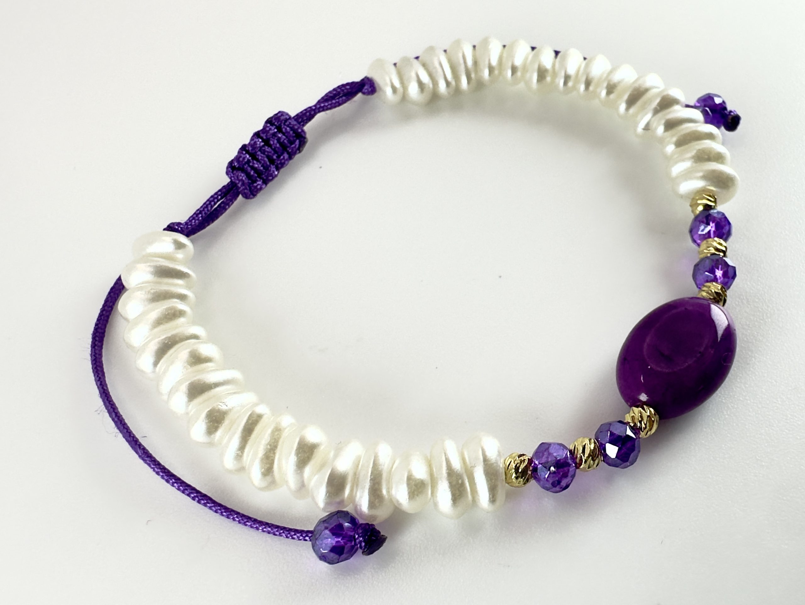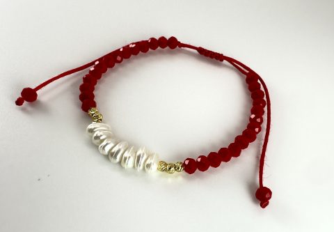 Ce bracelet raffiné est entièrement monté à la main sur chaîne ajustable. Les perles  symboles de pureté et d’élégance, sont subtilement, apportant modernité et durabilité.