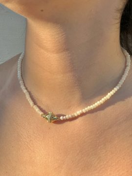 Ce bracelet raffiné est entièrement monté à la main sur chaîne ajustable. Les perles  symboles de pureté et d’élégance, sont subtilement, apportant modernité et durabilité.