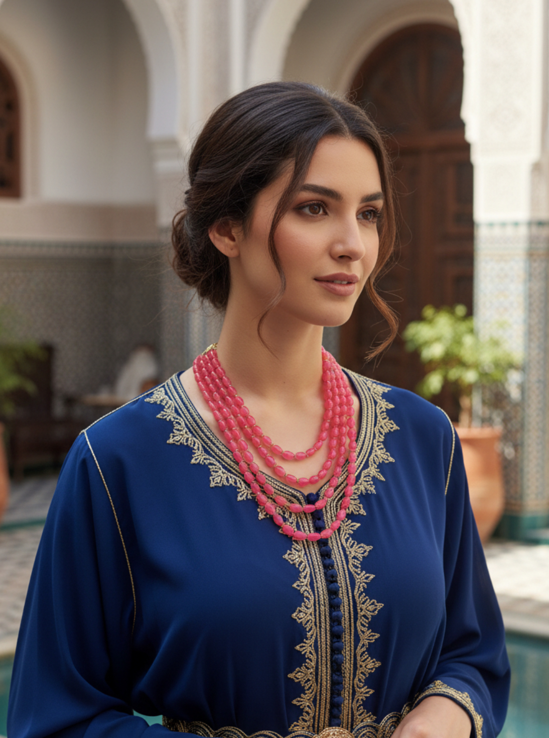 Le cordon ajustable permet de porter le collier à différentes longueurs, selon vos envies : ras-du-cou élégant ou porté plus long pour un style bohème. Sa confection artisanale fait de chaque pièce un bijou singulier, empreint du savoir-faire traditionnel marocain.