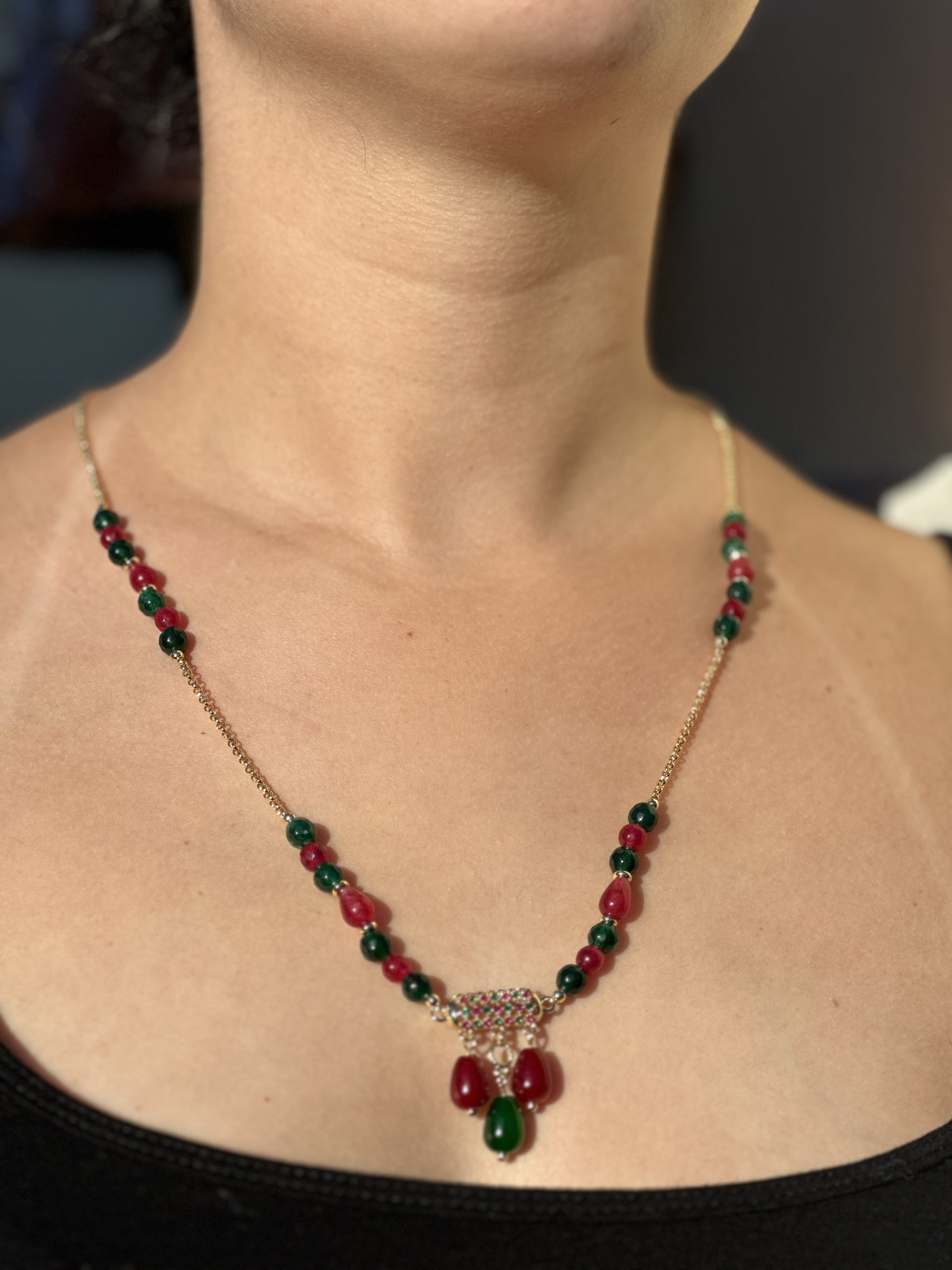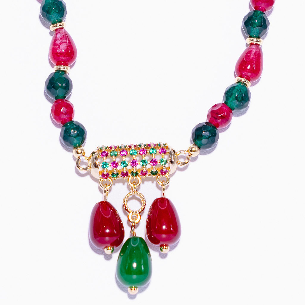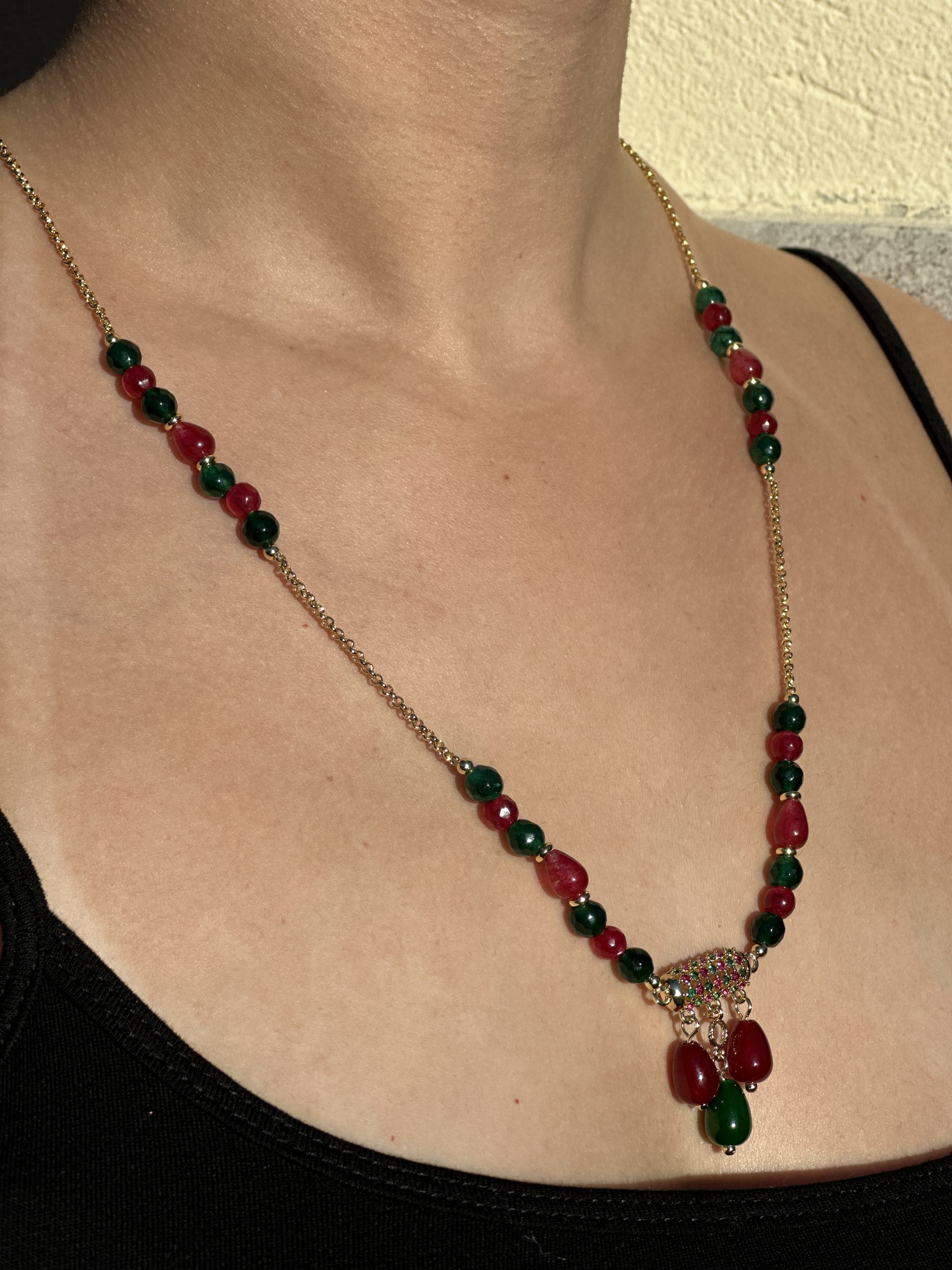 Collier avec perles précieuses et bijoux en acier inoxydable.