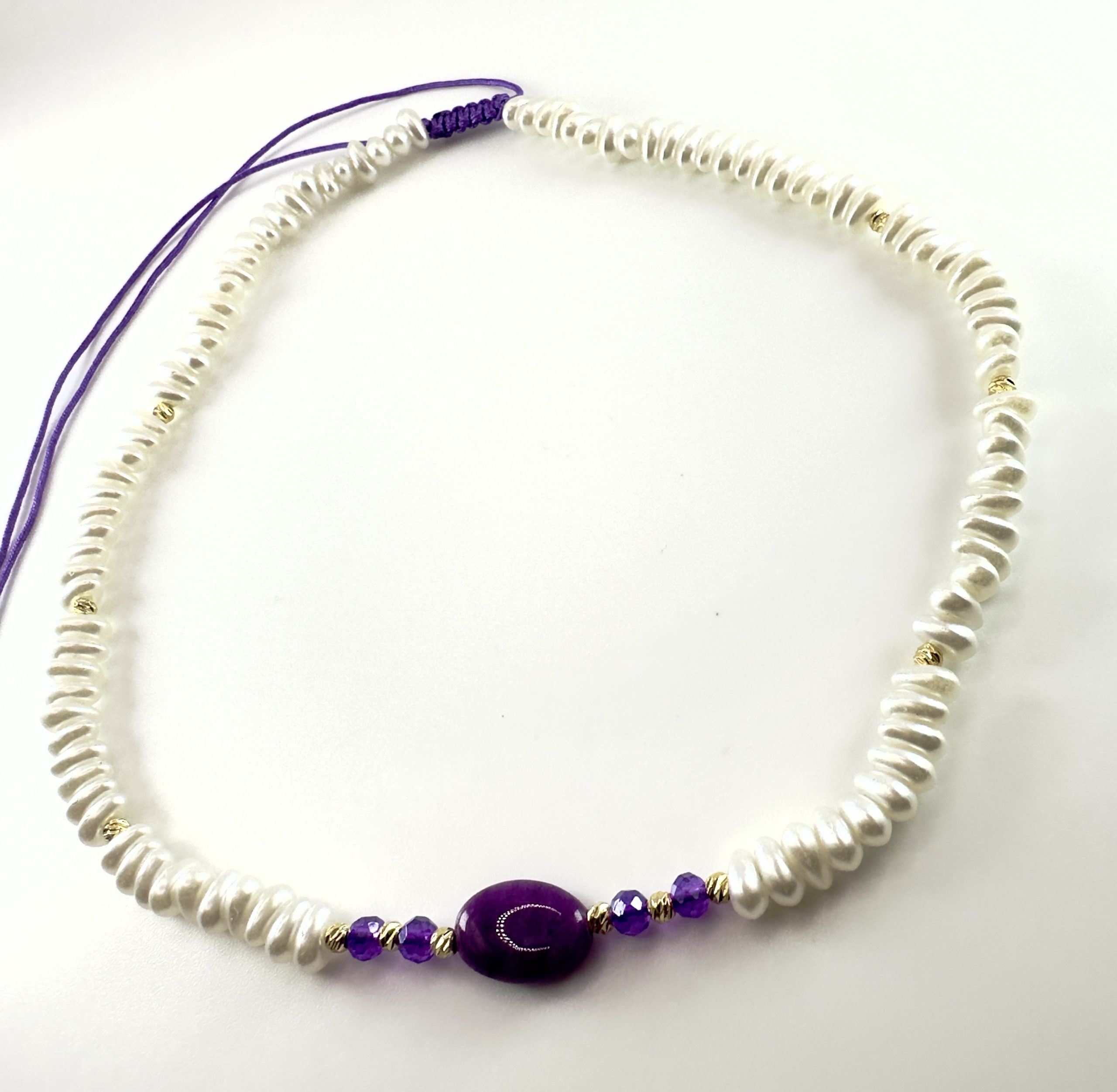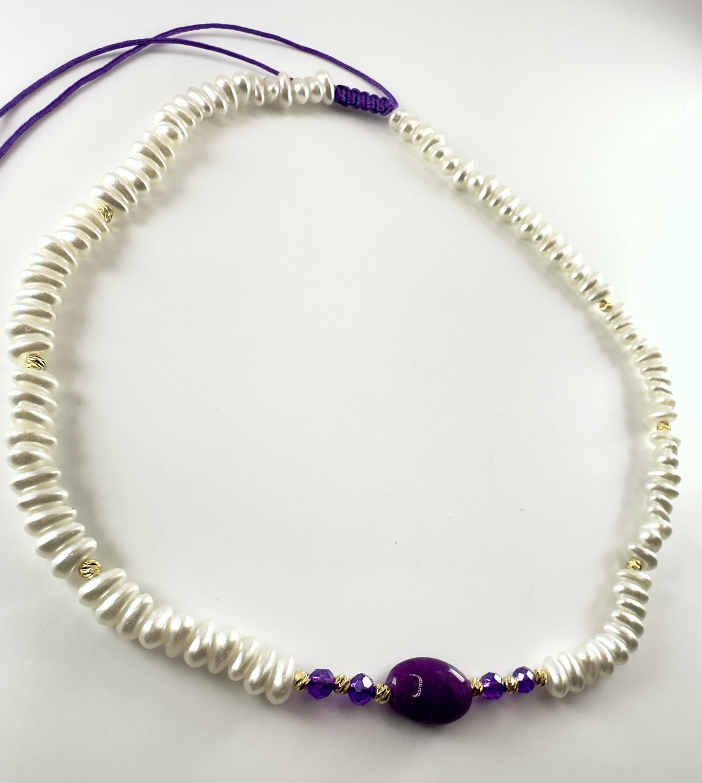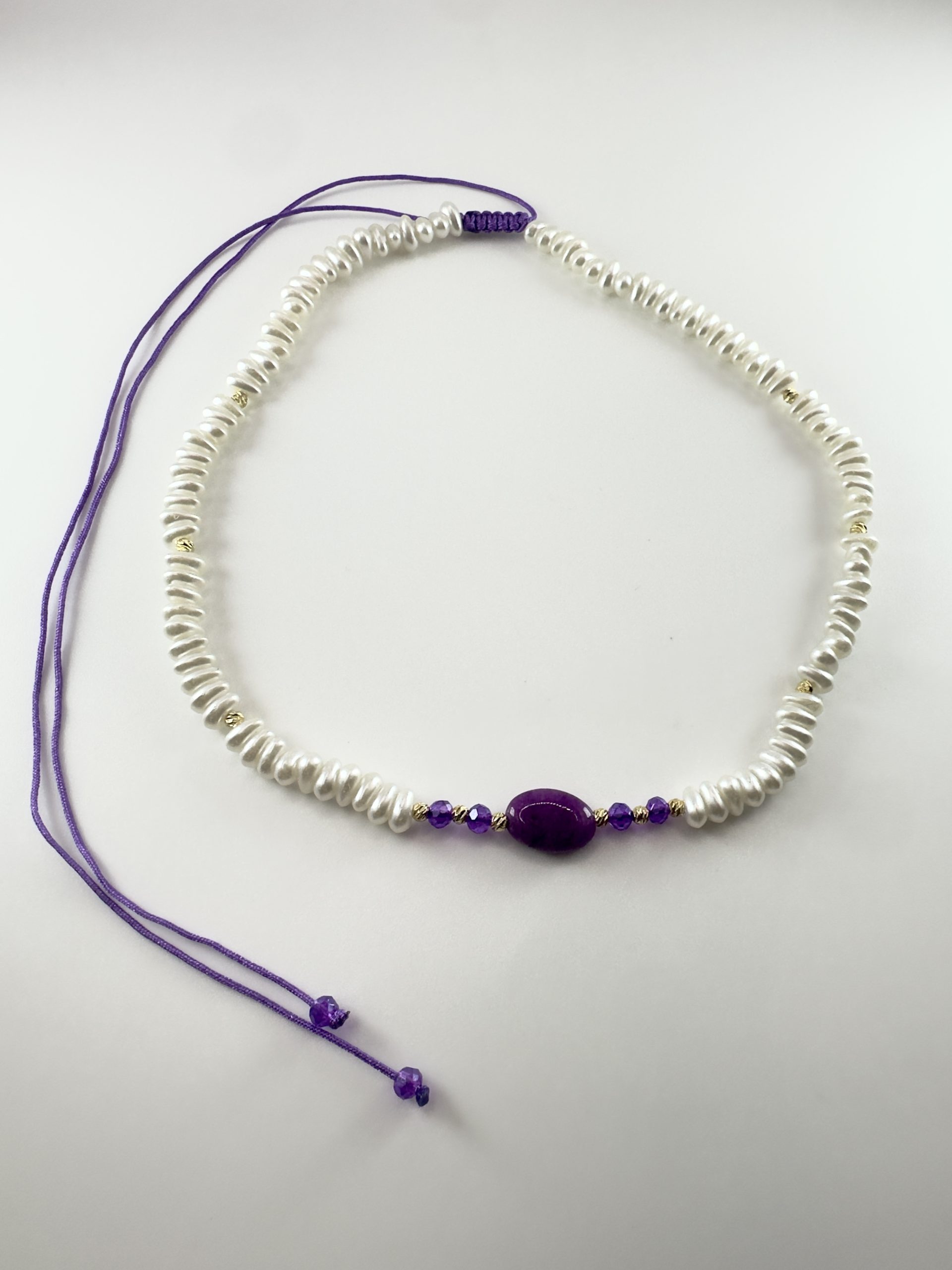 Ce collier raffiné est entièrement monté à la main sur chaîne ajustable. Les perles  symboles de pureté et d’élégance, sont subtilement, apportant modernité et durabilité.