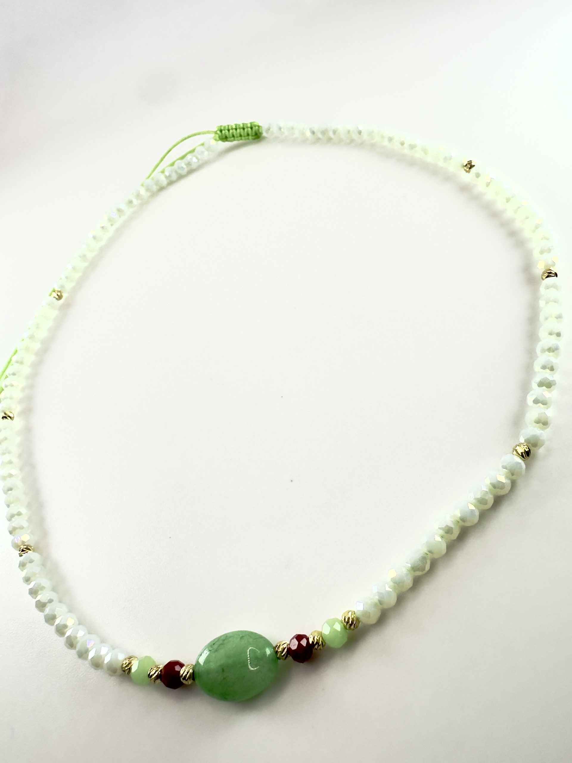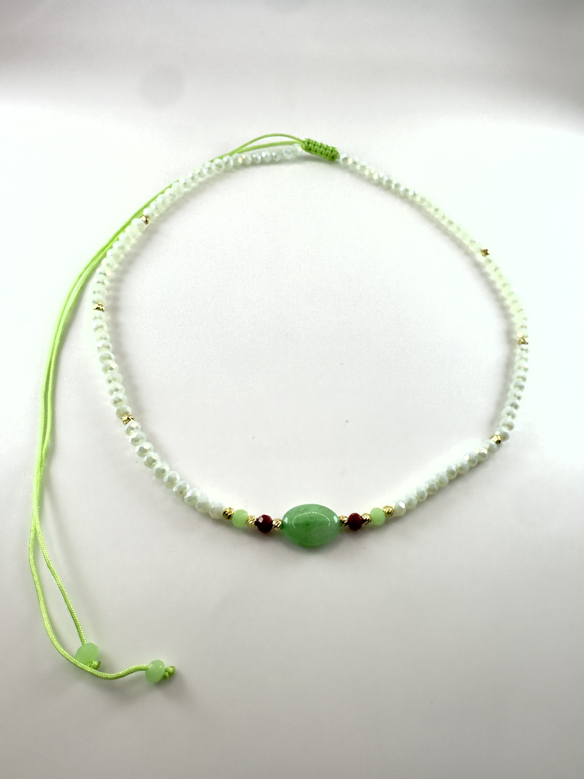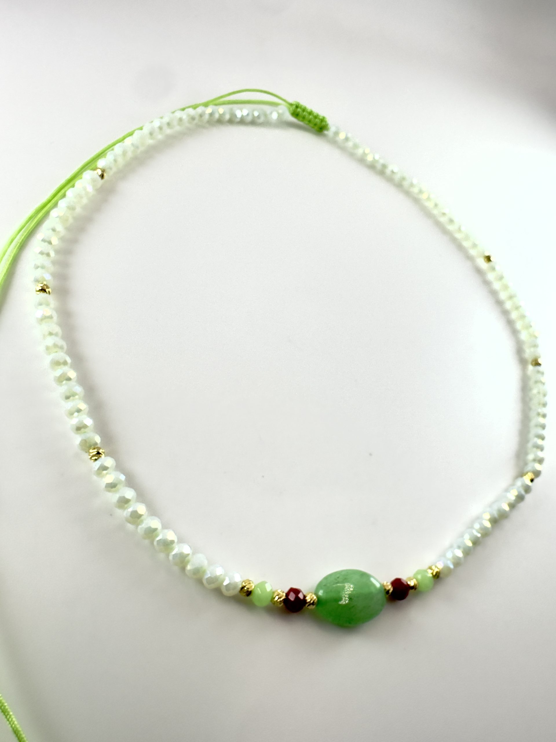 Ce collier raffiné est entièrement monté à la main sur chaîne ajustable. Les perles  symboles de pureté et d’élégance, sont subtilement, apportant modernité et durabilité.