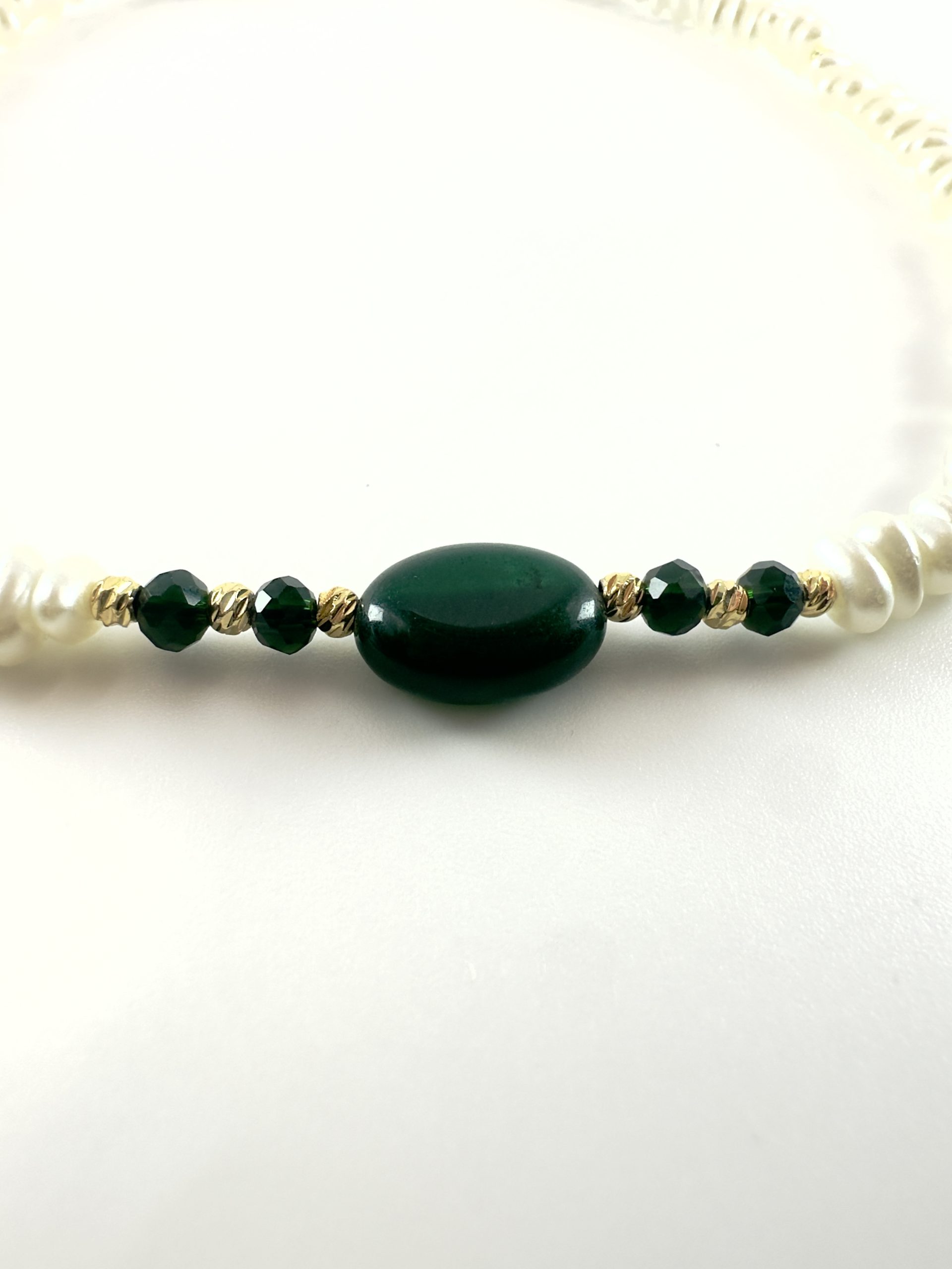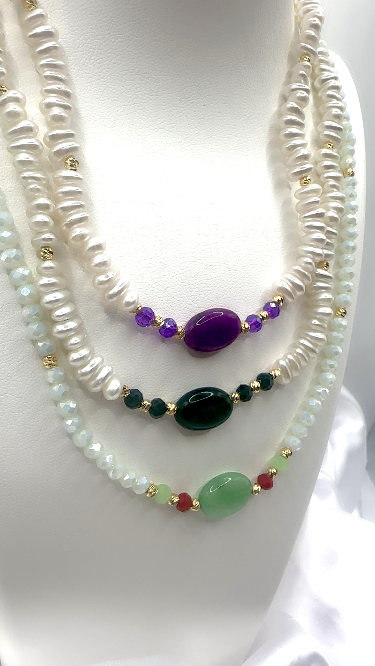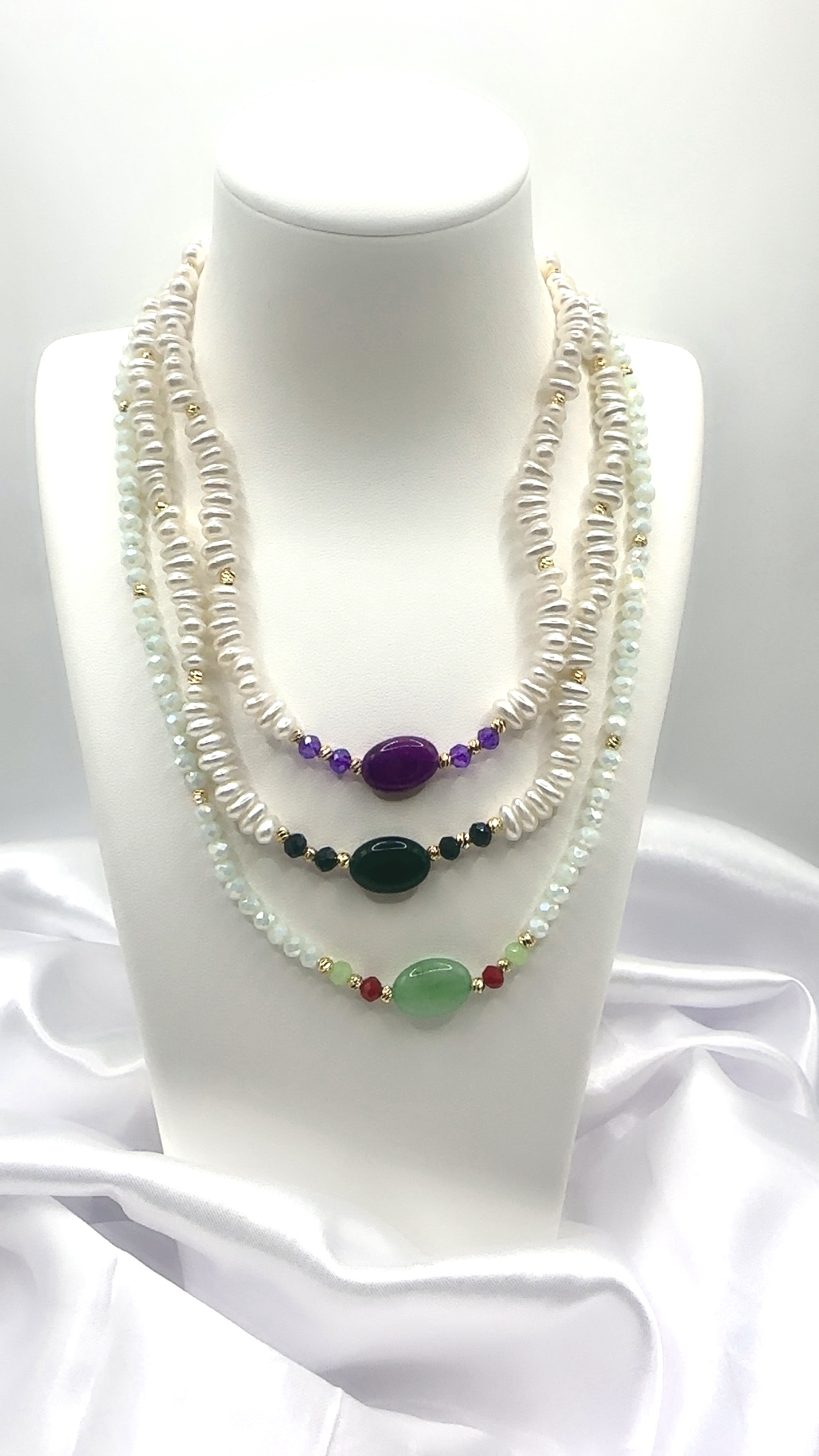 Collier avec perles précieuses et bijoux en acier inoxydable.