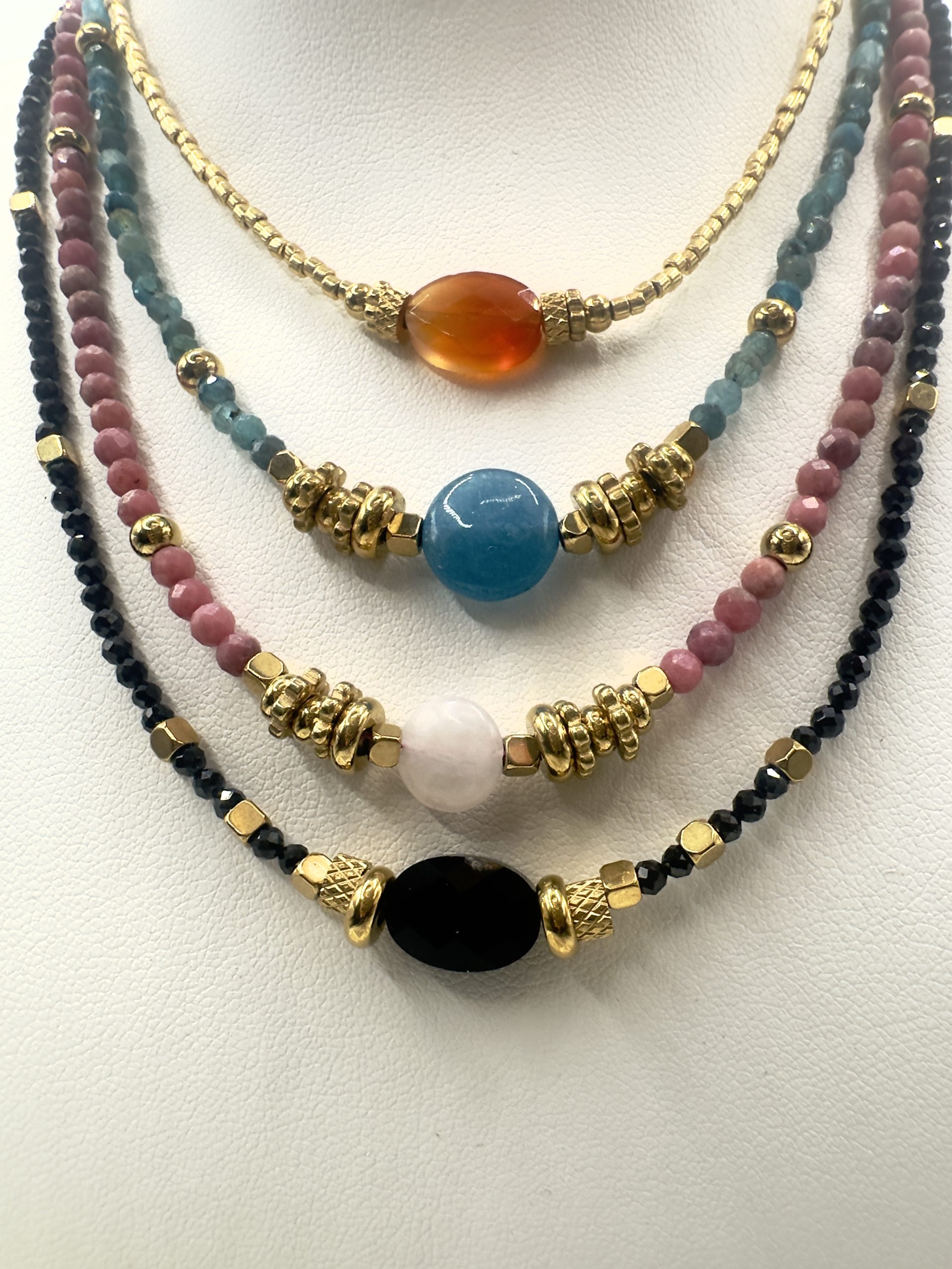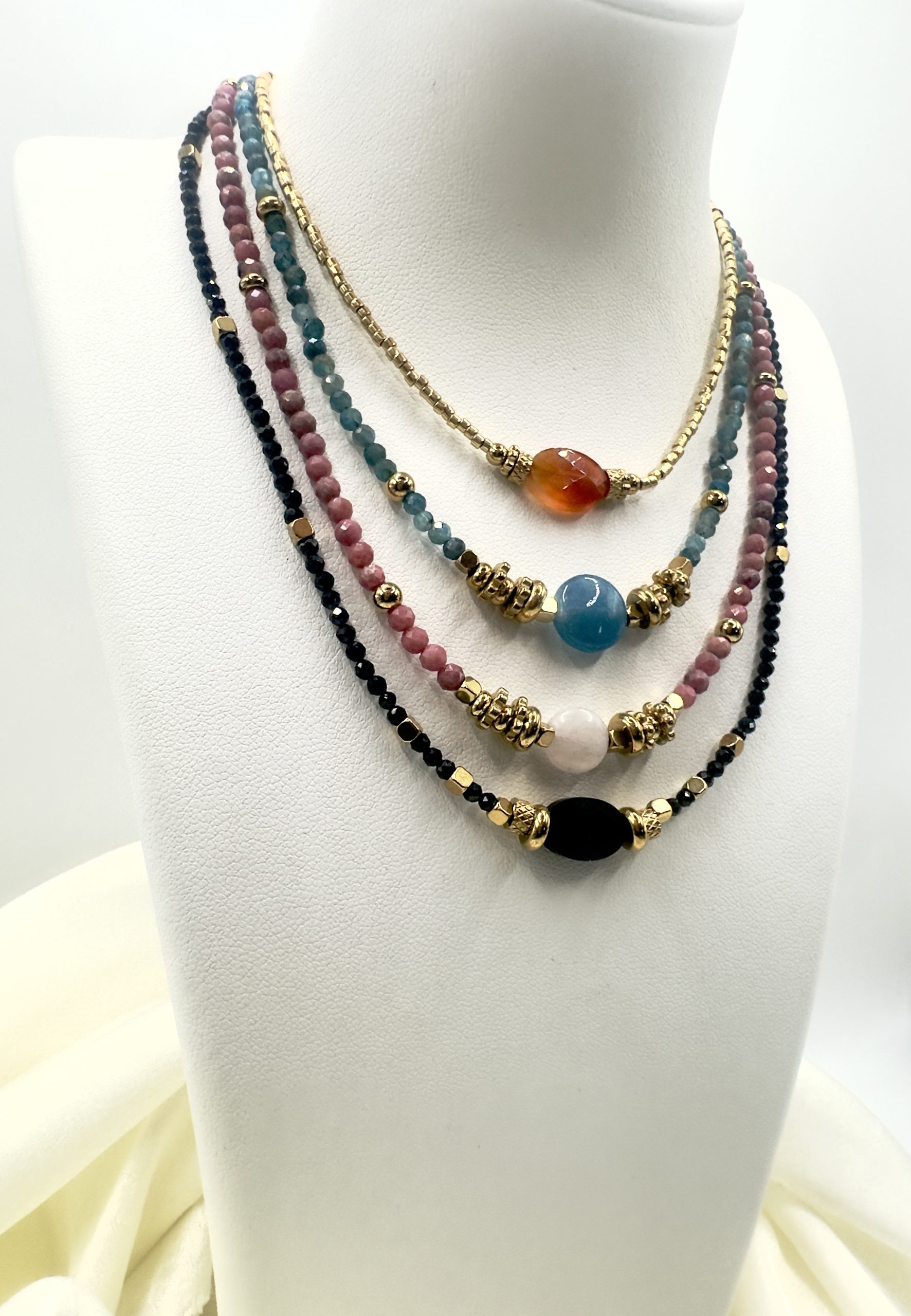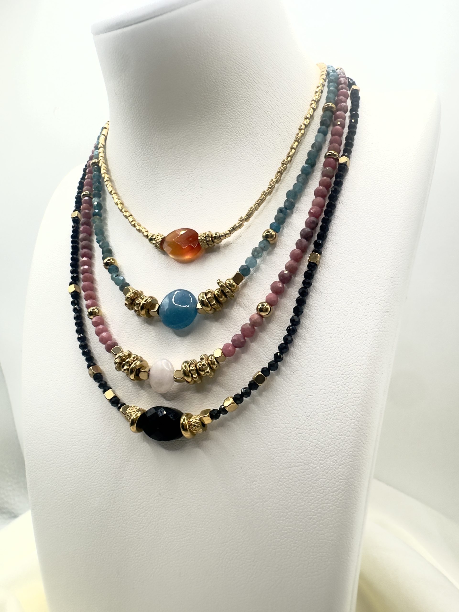 Collier avec perles précieuses et bijoux en acier inoxydable.