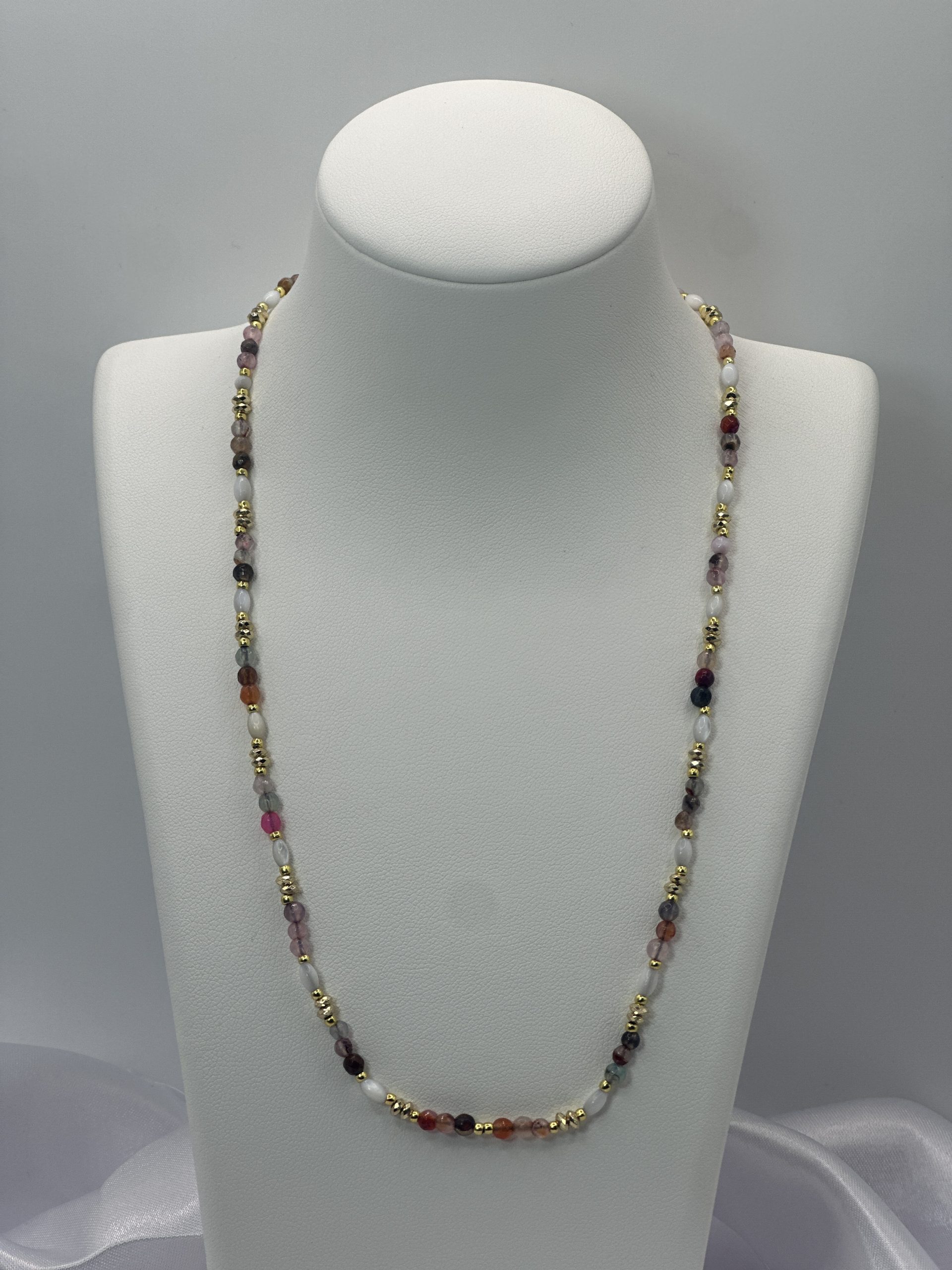 Collier avec perles précieuses et bijoux en acier inoxydable.