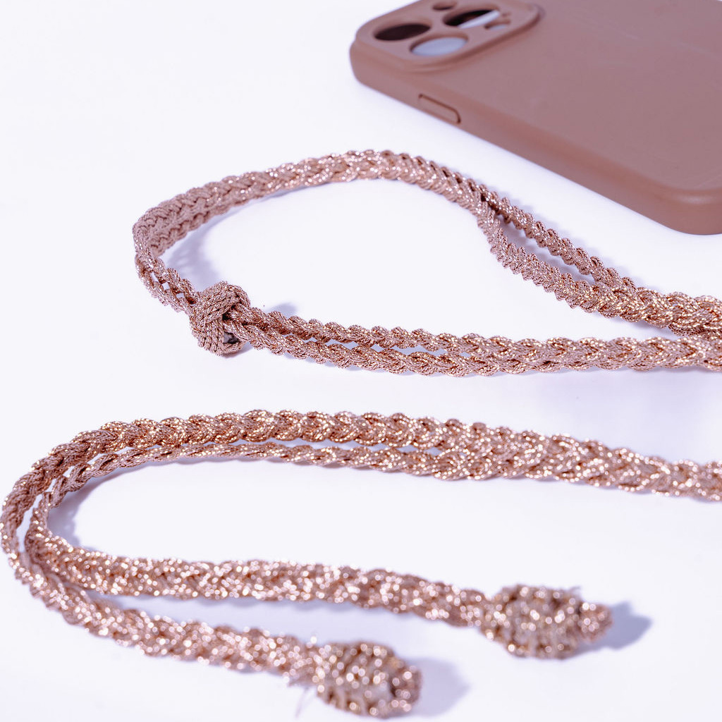 Cordon de téléphone artisanal en fil d’or – Élégance et authenticité